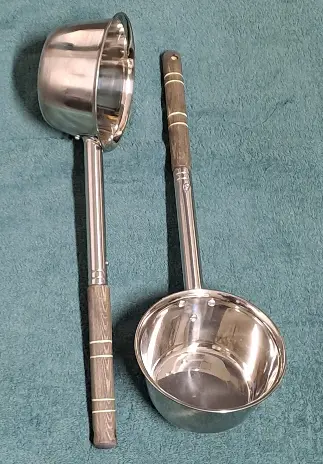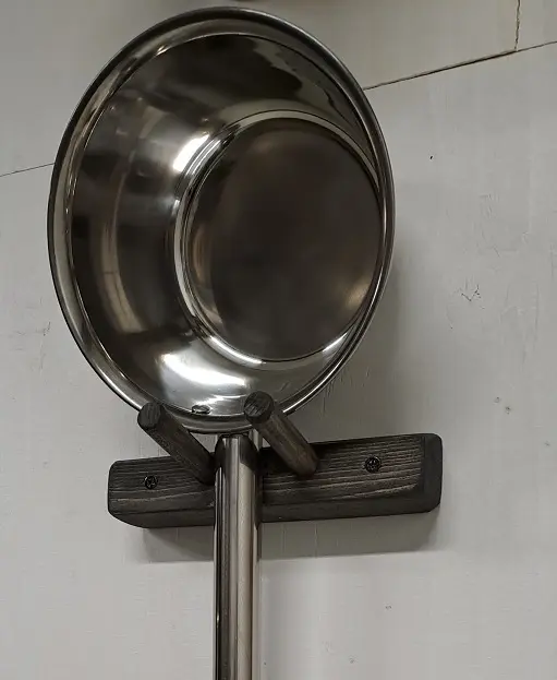 Pitkä löylykauha vaatii asianmukaisen telineen, jottei se törrötä miten sattuu saunan nurkassa.